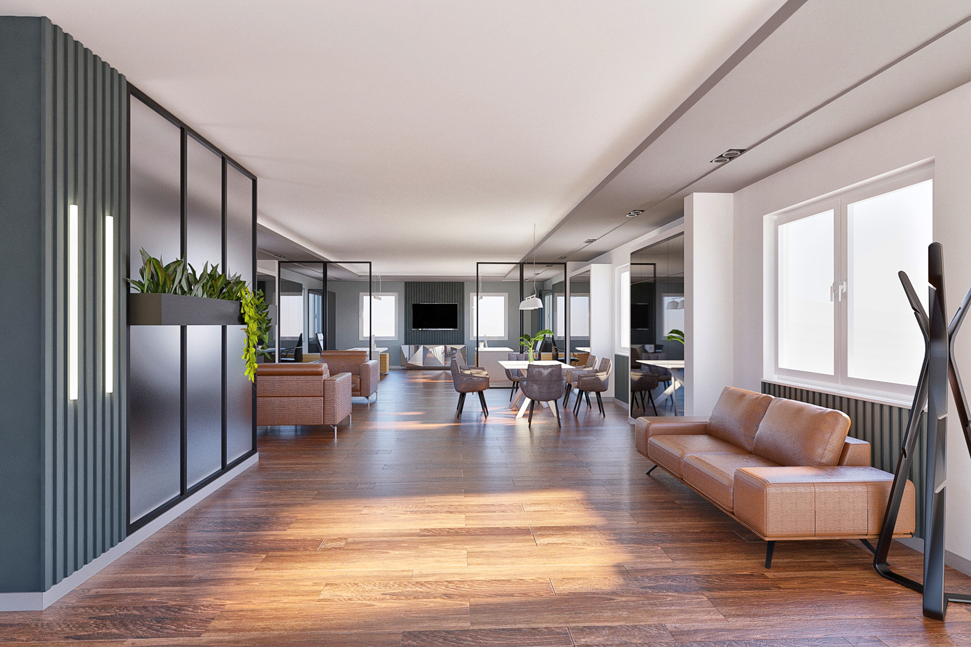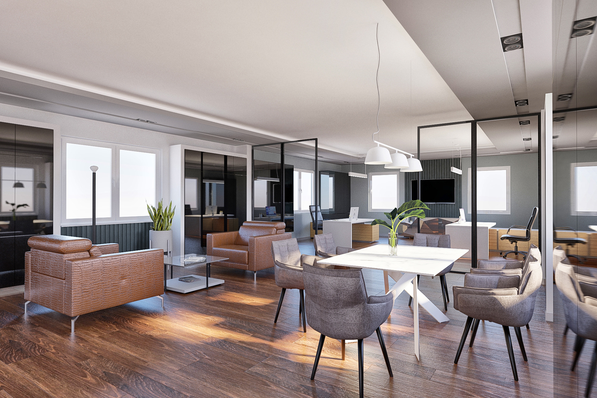 Głównym celem projektu była modernizacja istniejącego biura, wykorzystanie istniejących elementów oraz zaprojektowanie nowych rozwiązań.