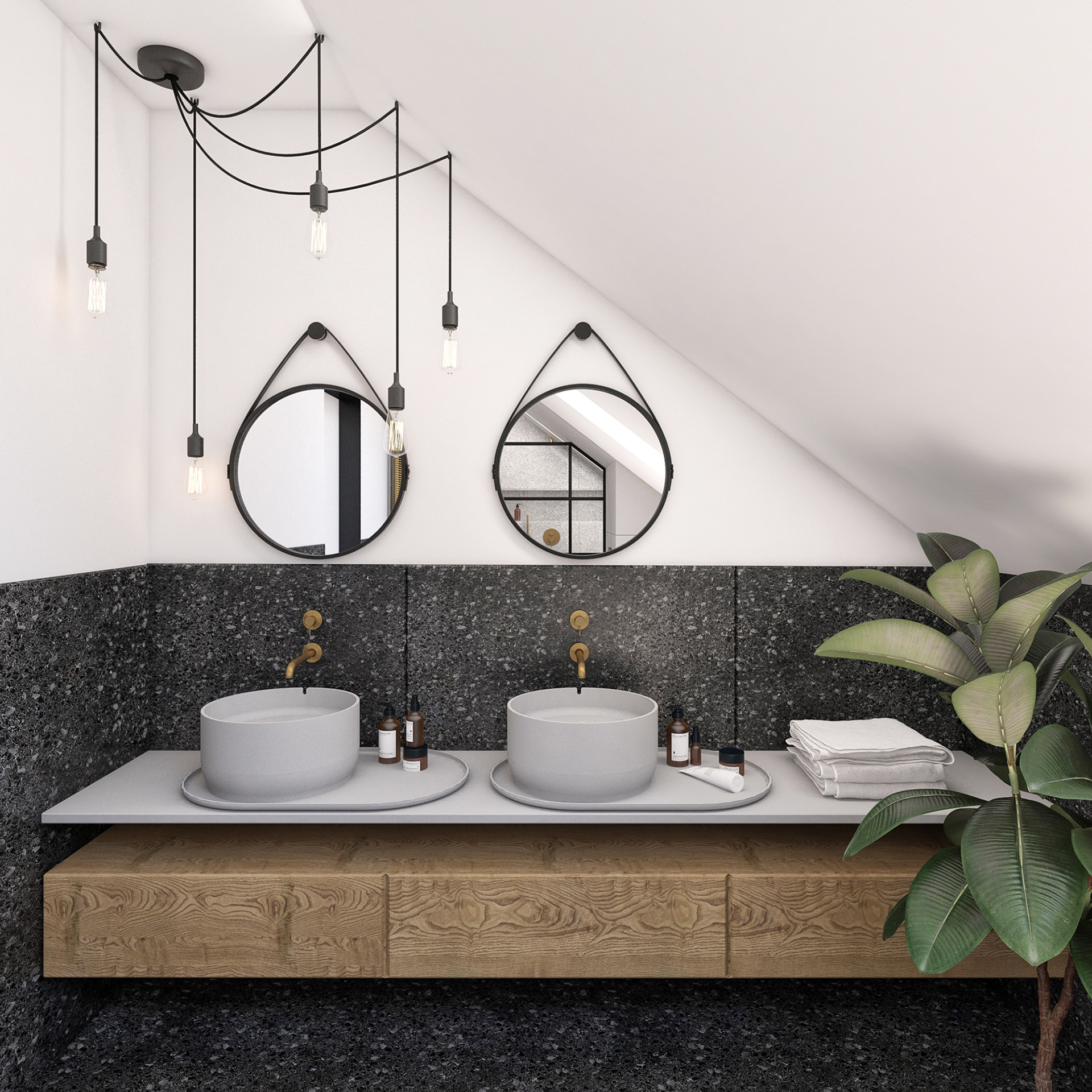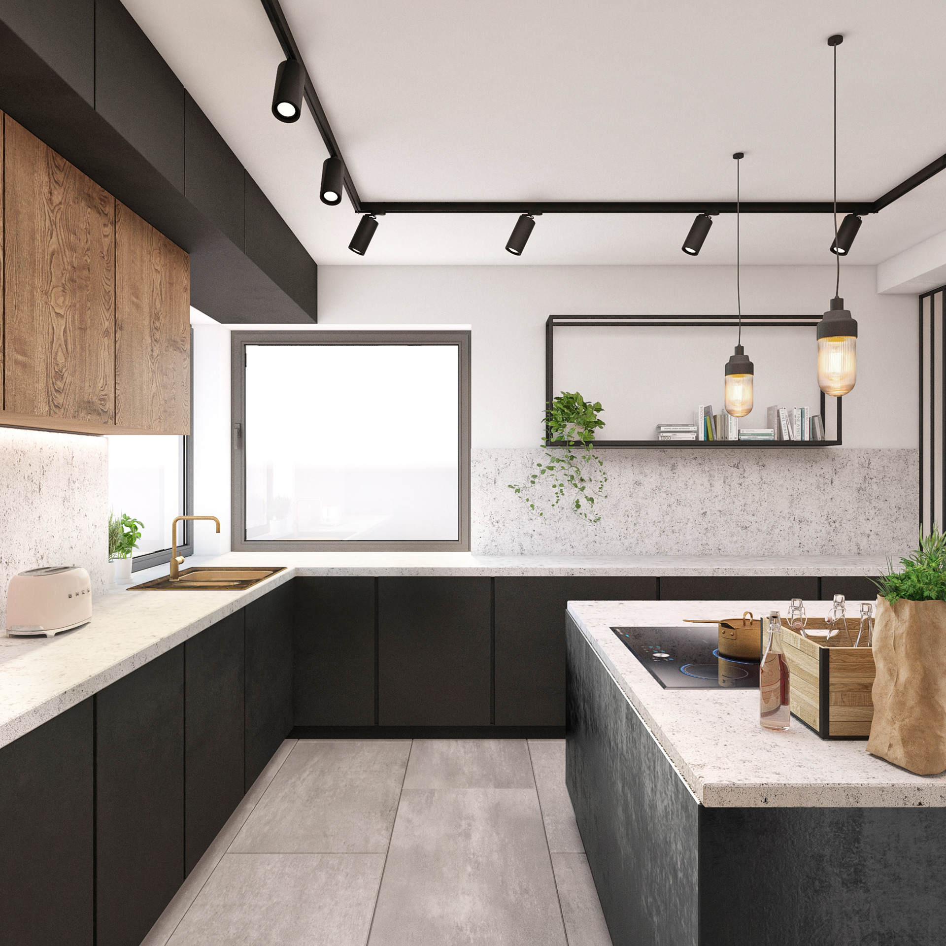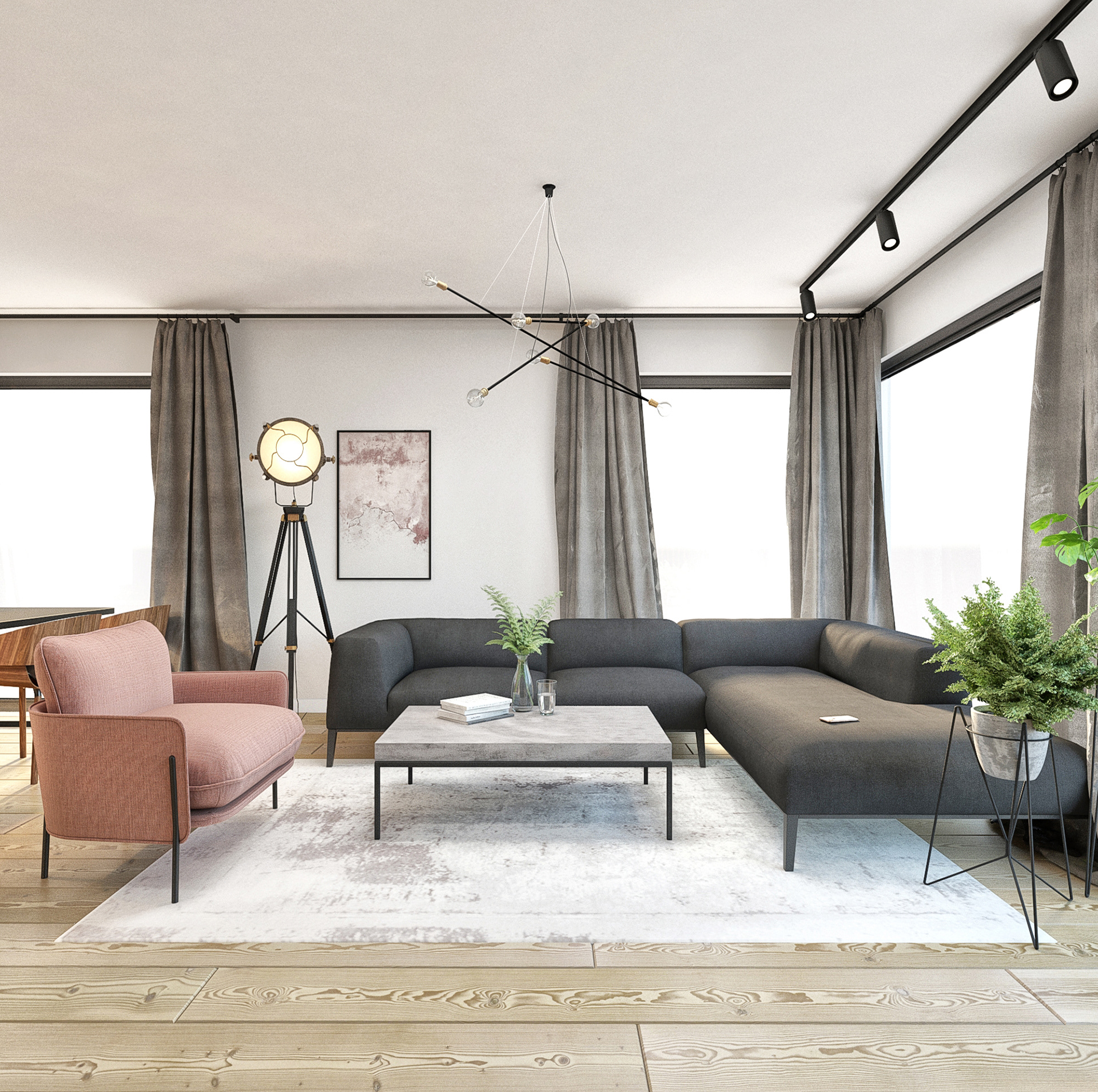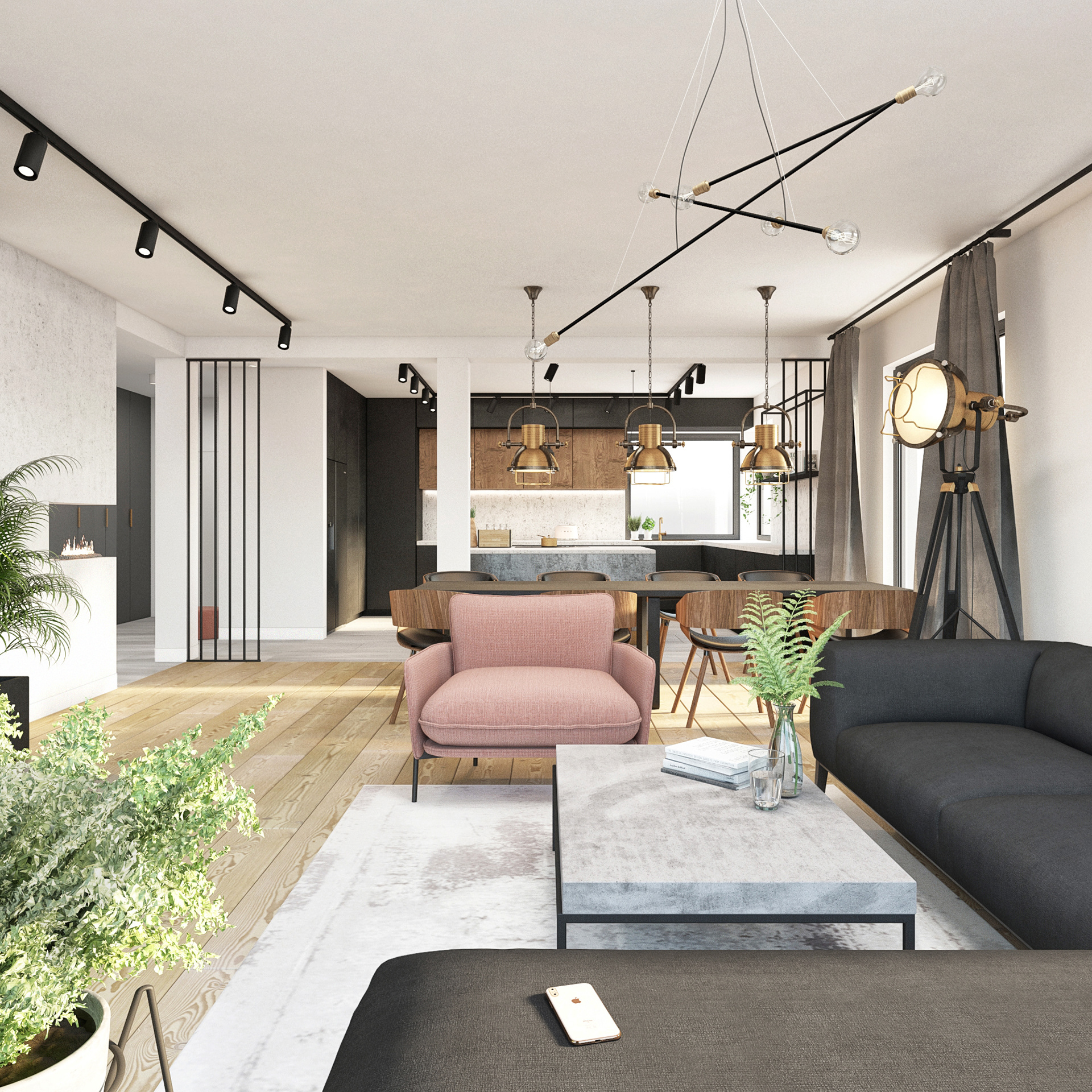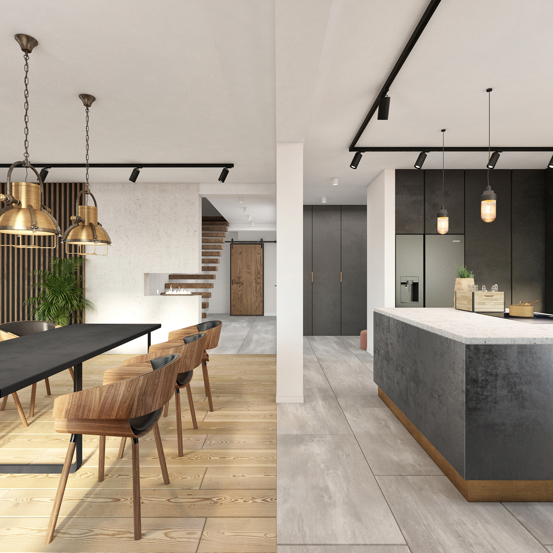 Aranżacja tego przestronnego domu łączy ze sobą industrialne elementy z przytulnymi akcentami.