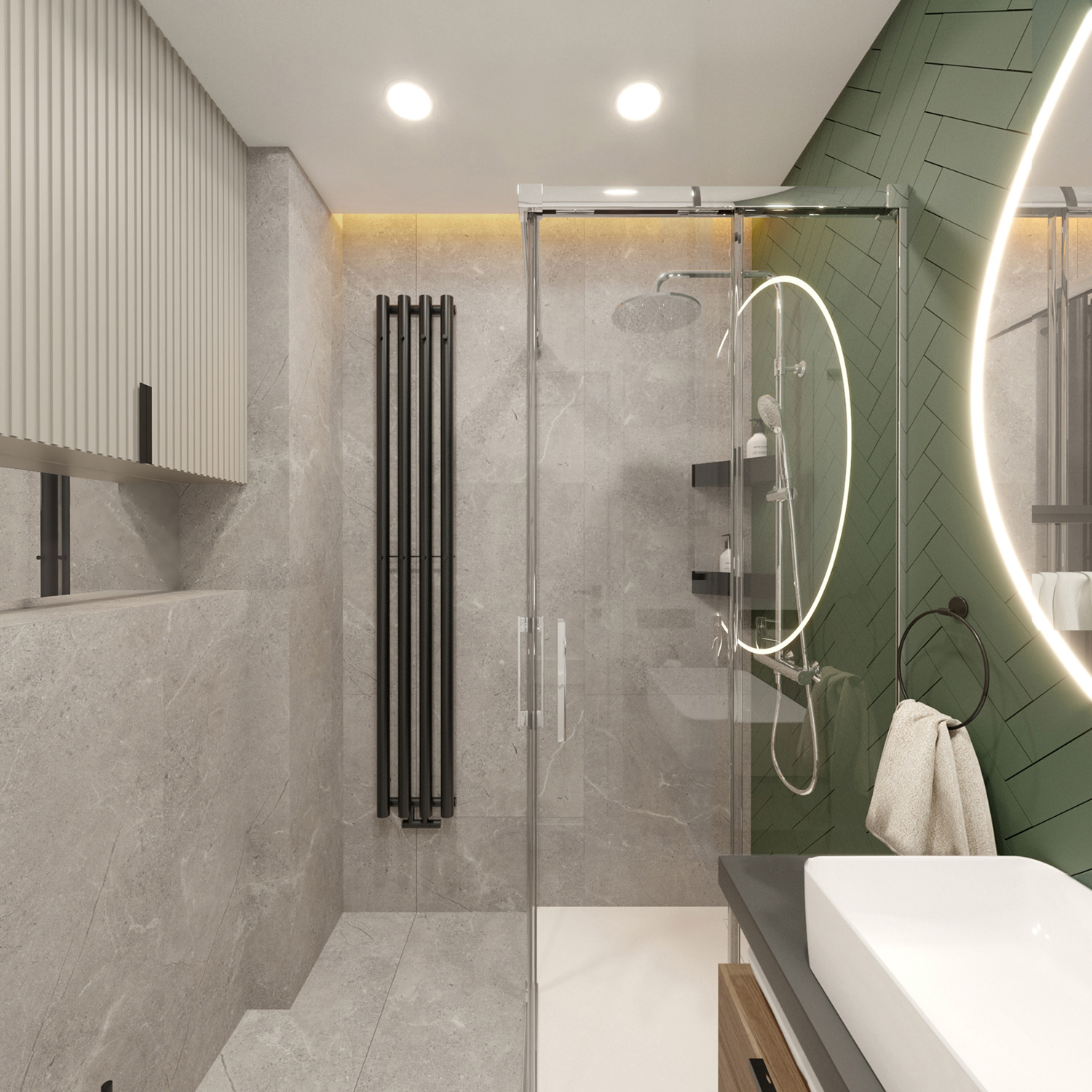 Projekt o uniwersalnej stylistyce, z elementami nowoczesnych rozwiązań z zachowaniem przytulnej atmosfery.
